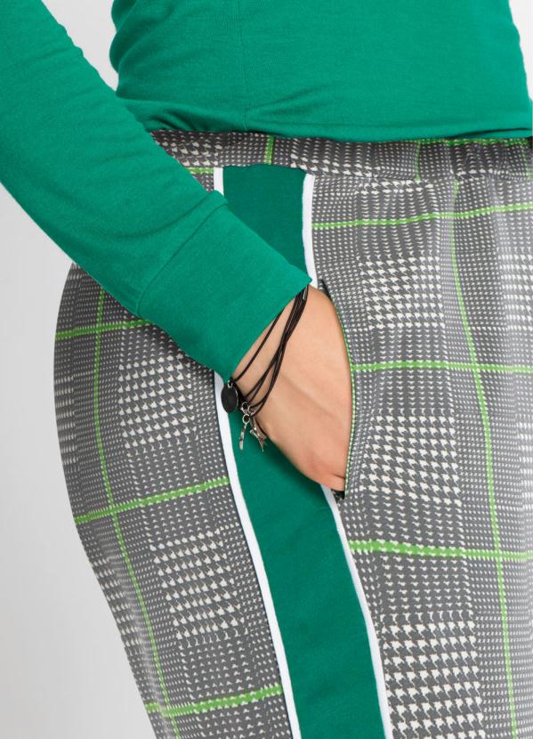 calça xadrez com faixa lateral