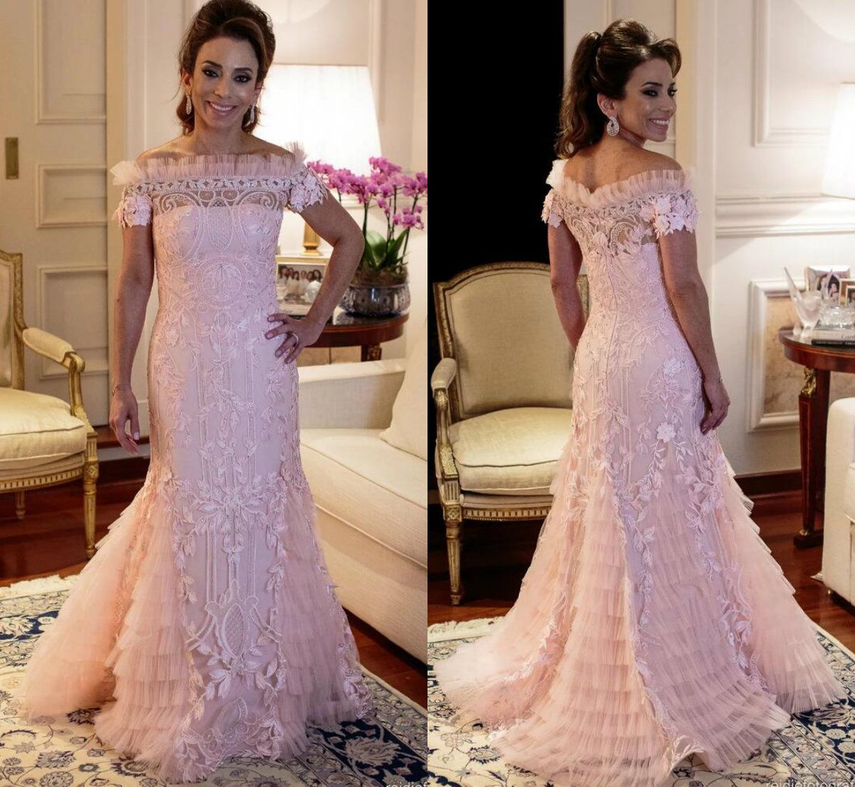 Compre Chic Mãe De Rosa Da Noiva Vestidos De Mangas Curtas Bateau Pescoço Curto Appliqued Lace Mãe Do Noivo Vestido Mermaid Evening Vestidos De Visitante Wear De Dressvip, $670,62 | Pt.Dhgate.Com vestido mae da noiva rose